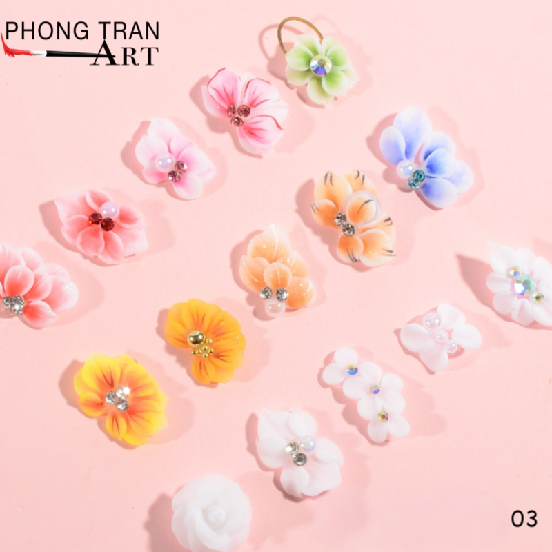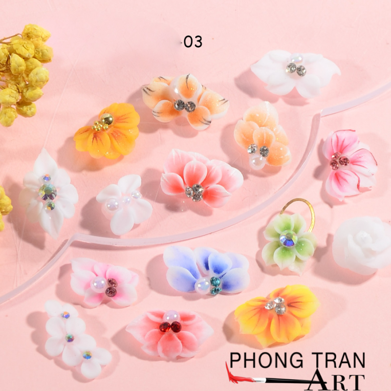 ✅Ưu Điểm : Bông có độ cong tự nhiên giúp ôm sát mặt móng của khách mà không bị cộm. Có đính sẵn đá lấp lánh khách rất thích