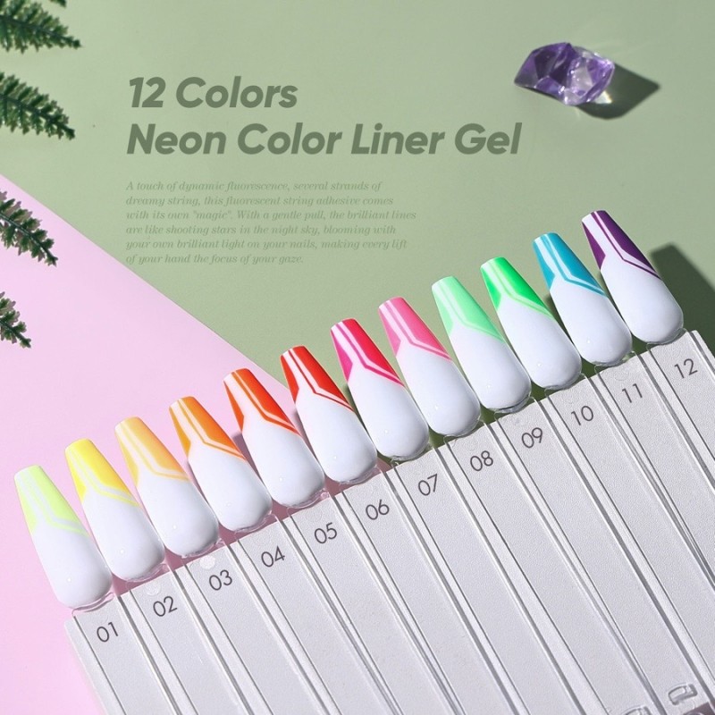 Set Gel vẽ Neon 12 màu sặc sỡ chuyên dùng để Design, Gel vẽ đâu nằm đó , không chảy , không co , ko rút. Vẽ rất sướng tay
